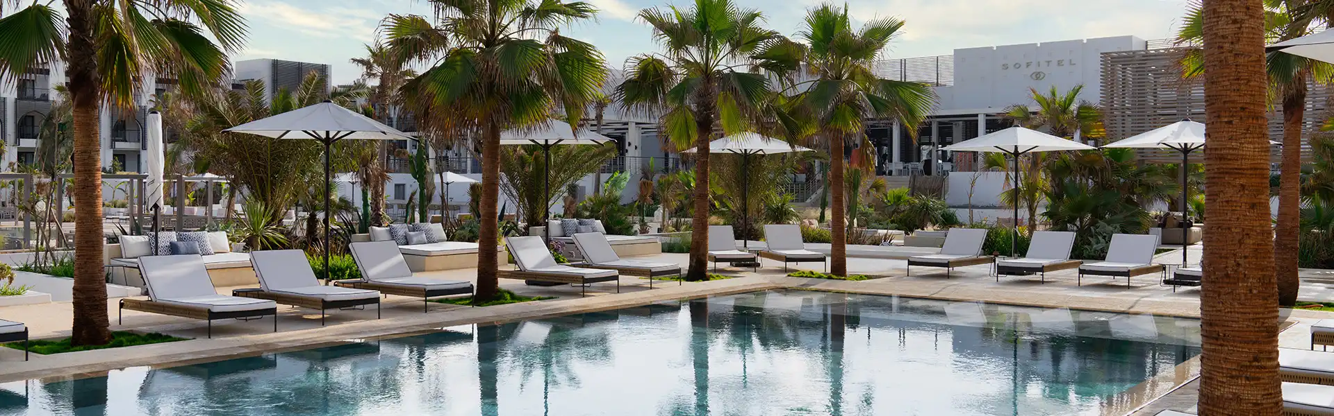Sofitel Agadir Thalassa Sea & Spa's private beach and seawater spa, your stay will bring you vitality, tranquility and serenity. Discover the magic of the ocean where wellness and rejuvenation are at the heart of everything we do. Facing the Atlantic Ocean, this 5-star Moroccan-inspired hotel with its pool, lush patio and calm and gentle atmosphere offer a timeless and unforgettable experience. The resort has 173 rooms, including 44 suites, and three restaurants serving Moroccan cuisine. Extend this experience of well-being at the thalassotherapy centre with its beauty and fitness area.