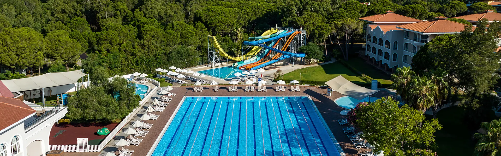 This 5* ultra all-inclusive resort is located between magnificent golf courses and blue Mediterranean waters where you can feel the breeze and smell fresh scent of the pine trees at the same time. Sirene Belek Hotel is located on the South Mediterranean Coast of Turkey and only a short 30 minute drive from Antalya International Airport.